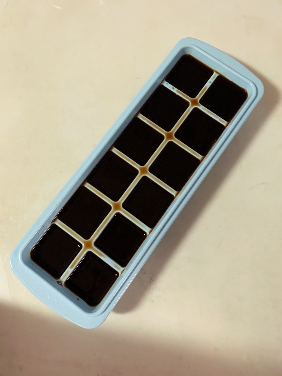 에스프레소는 텀블러에 옮겨 담고, 시즌 음료를 마신 다음 사무실로 돌아오자마자 에스프레소를 냉동실에 얼려서 보관을 해야 해요. 커피가 마시고 싶을 때 하나씩 꺼내서 따뜻한 물을 부으면 아메리카노가 완성.