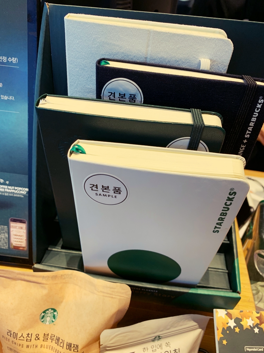 스타벅스 매장에 방문해서 주문을 하려고 하는데 전시되어 있는 플래너 3종과 미니 플래너를 보고 어떤 것을 받을까 고민이 되었어요. 일단 주문은 해야 하기에 고민은 잠시 접었어요.