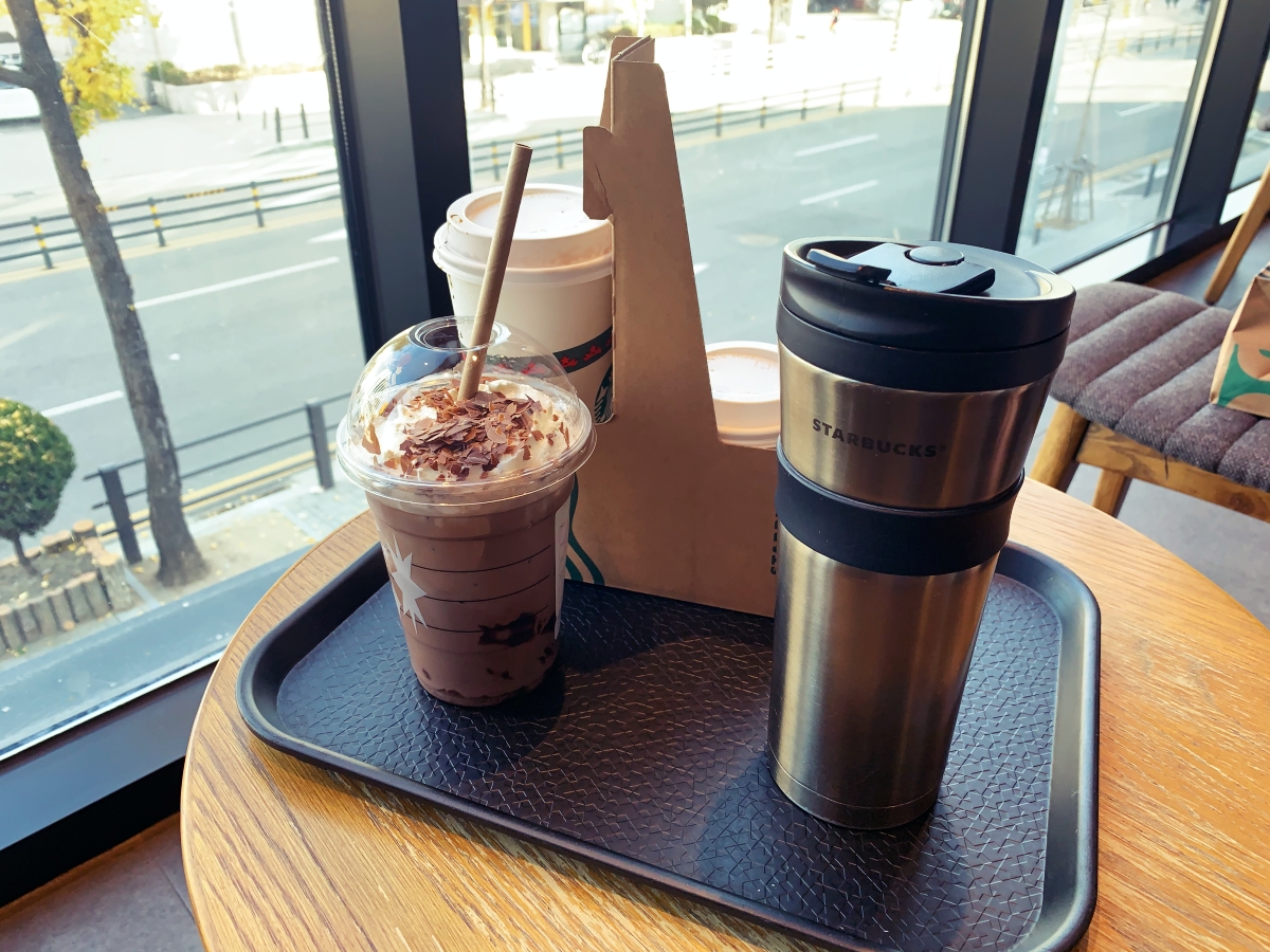 그저께 시즌 음료 1잔이랑 아메리카노 1잔을 이미 적립했기 때문에, 에스프레소 13잔을 기프티콘 신공으로 구매 후 에스프레소를 담아올 텀블러를 챙겨서 만반의 준비를 하고 가까운 스타벅스 매장으로 달려갔습니다. (두근두근)