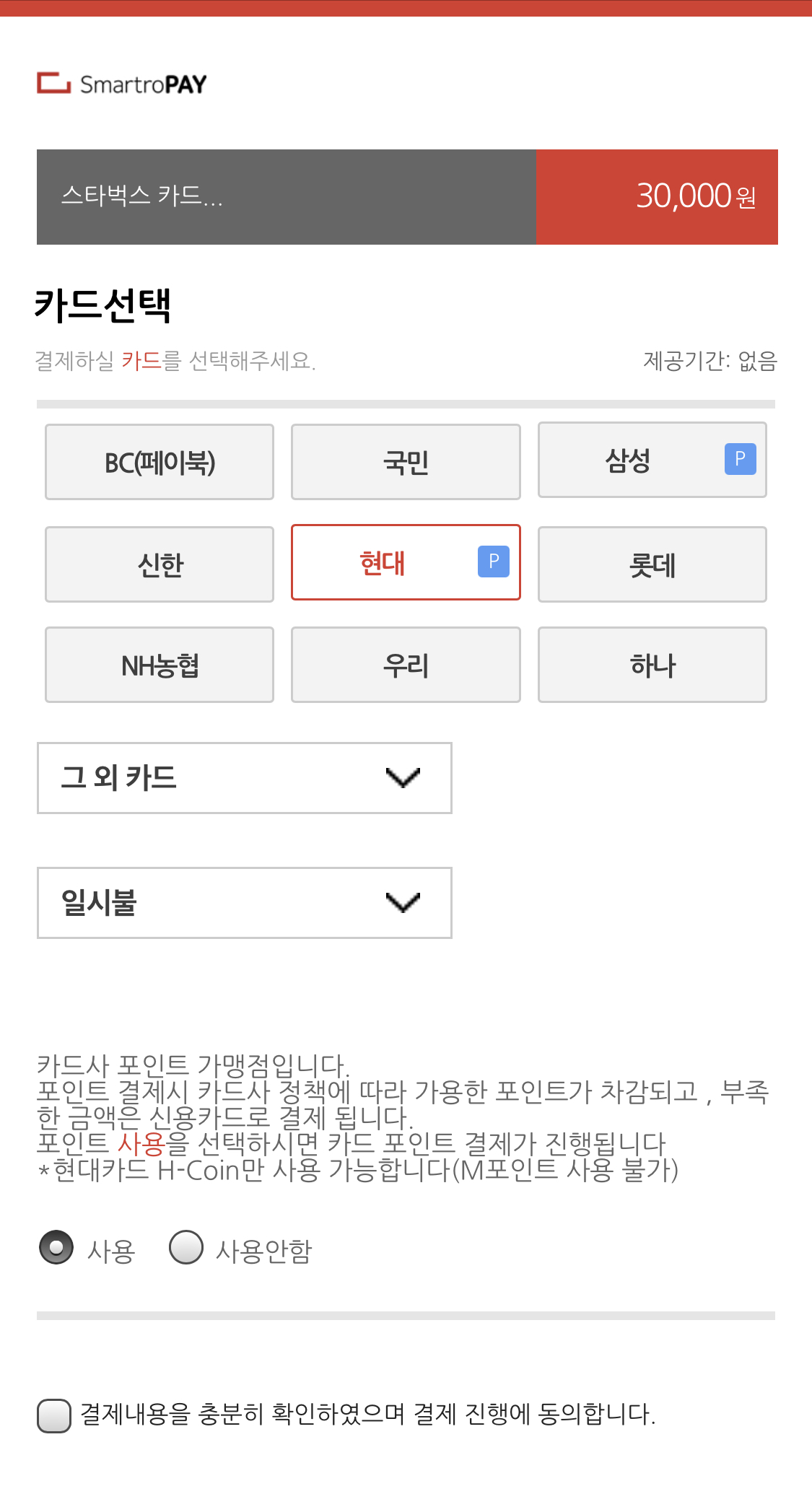 현대카드가 있으신 분들은 여기서 또 한 번의 혜택이 있는데, 바로 현대카드의 H-Coin으로 스타벅스 카드를 충전할 수 있다는 사실입니다.