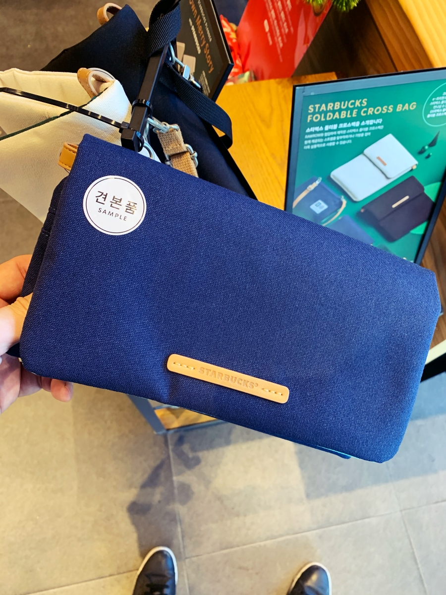 음료를 기다리면서 도중에 보게 된 폴더블 크로스백. 이 것 또한 탐이 나서 다시 한번 e-프리퀀시를 모아볼까 하는 생각을 또 하게 되었죠. 아직 스타벅스 카드에 금액이 9만 원이 있으니 고민해보고 도전해봐야겠네요.