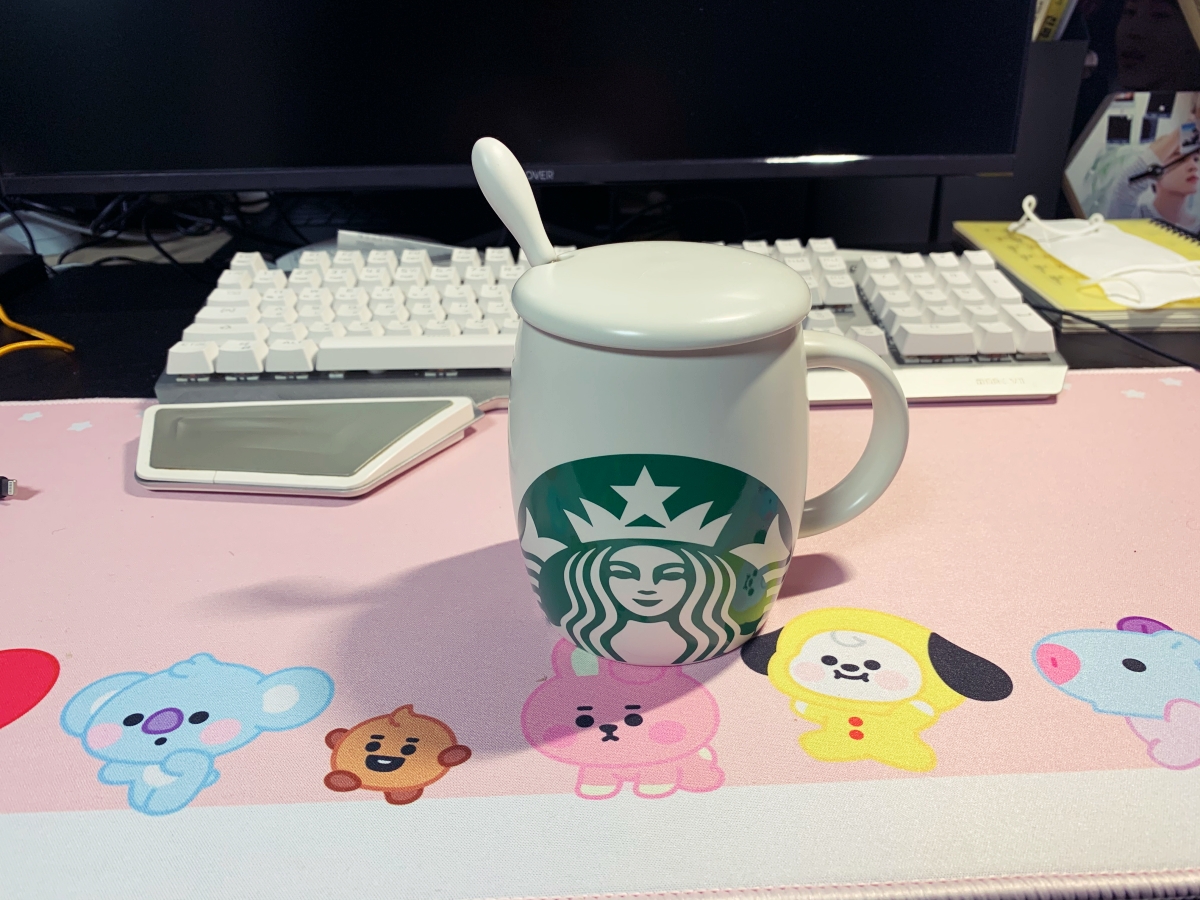 스타벅스 커피는 역시 스타벅스 머그컵에 마셔줘야 제맛이죠. 티스푼으로 커피를 살살 저어서 맛있게 아메리카노를 만든 후 뚜껑을 덮어두면 텀블러 못지않게 오랜 시간 따뜻하게 마실 수 있어서 좋아요.