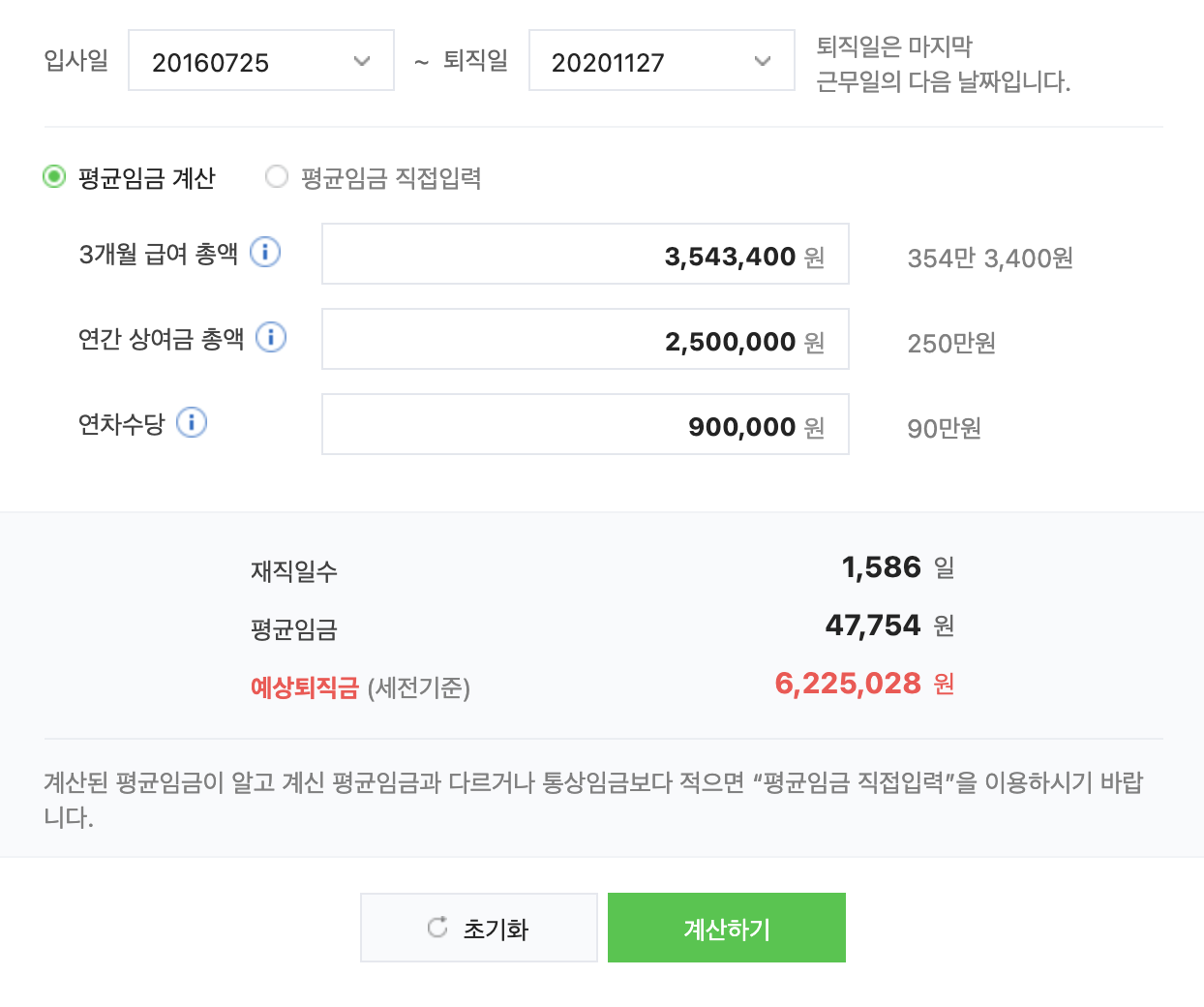 - (a+b+c)/퇴직 전 3개월간의 일수(통상 89일~92일) = d(평균 급여)